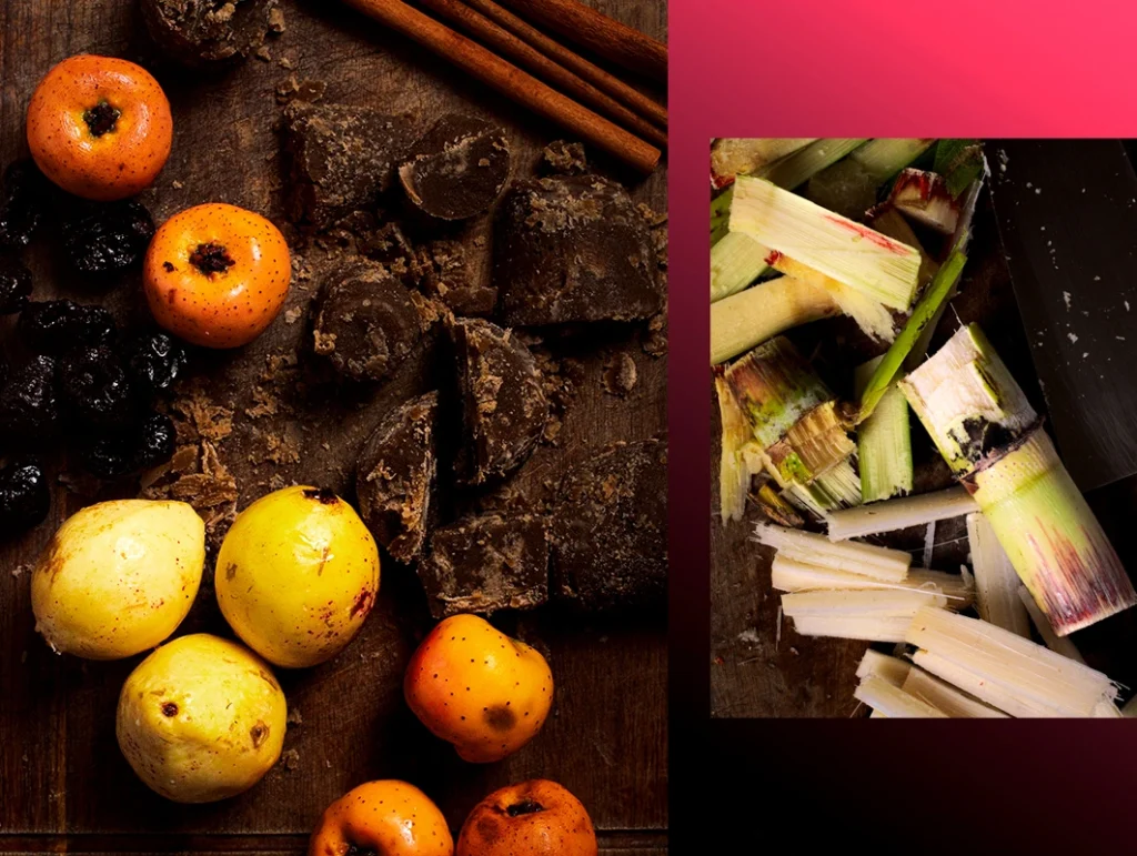 Lo abrazó el piloncillo, oscuro y honesto como cañaveral sudado. Lo perfumaron canela y clavo, especias viajeras con pasaporte manchado por sangre y guerras silenciosas. Lo suavizaron tejocote, guayaba, manzana y pera, frutas que le hablaron de tierra y temporadas. La flor de jamaica lo tiñó de rojo profundo, recordándole que no hay dulzor sin heridas. Y la caña, siempre la caña, testigo incómodo de plantaciones, negritud y trabajo borrado de los libros, le dio columna vertebral: dulzor, cuerpo y la memoria amarga de la esclavitud.