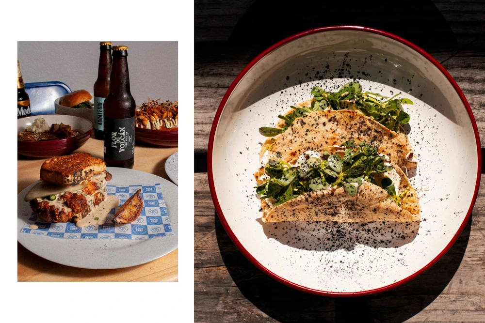 Hay algunos platos y bebidas que ordenan el relato de Dogo con gran claridad. La tosta de hummus funciona porque no intenta más de lo necesario: pan bien tostado, untuosidad precisa, balance reconfortante. Las quesadillas de huitlacoche apuntan alto, tienen un sabor profundo y honesto, reforzado por la salsa macha que se sirve en mesa; sin embargo, la experiencia se quiebra por un descuido técnico difícil de justificar: las semillas de guayaba sin pasar por chino interrumpen el bocado con una aspereza incómoda, recordando que el buen sabor no compensa una textura mal resuelta. Los chilaquiles, especiados y de carácter marcado, cumplen desde la intensidad, aunque por la porción vasta, pueden volverse abrumadores hacia el final. La Hamburguesa Concordia y la panacota con compota de fruta de temporada cierran el arco entre antojo y dulzor sin grandes riesgos ni tropiezos: platos bien ejecutados, correctos más que memorables, que no definen la cocina pero sí ayudan a entender su amplitud y su vocación cotidiana.